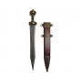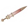 Макет от испанской компании Denix выполнен безупречно, с большим вниманием к каждой детали. Остроконечный клинок длиной 25 см и толщиной 4 мм изготовлен из специального цинкового сплава, и имеет несколько тонких желобов, предназначенных в реальных прототипах для стекания крови. Рукоятка кинжала и элементы ножен выполнены из латуни. Оружие богато украшено инкрустацией с изображением римских воинов и зданий римской эпохи, рукоятка фигурная, и позволяет удобно удерживать кинжал. Ножны изготовлены из пластика, обтянутого кожей. Общая длина оружия составляет 74 см, вес с ножнами – 2,54 кг. Кинжал выглядит дорого и эффектно, в целях безопасности его использования кинжал не заточен, так что нанести им травму будет невозможно.