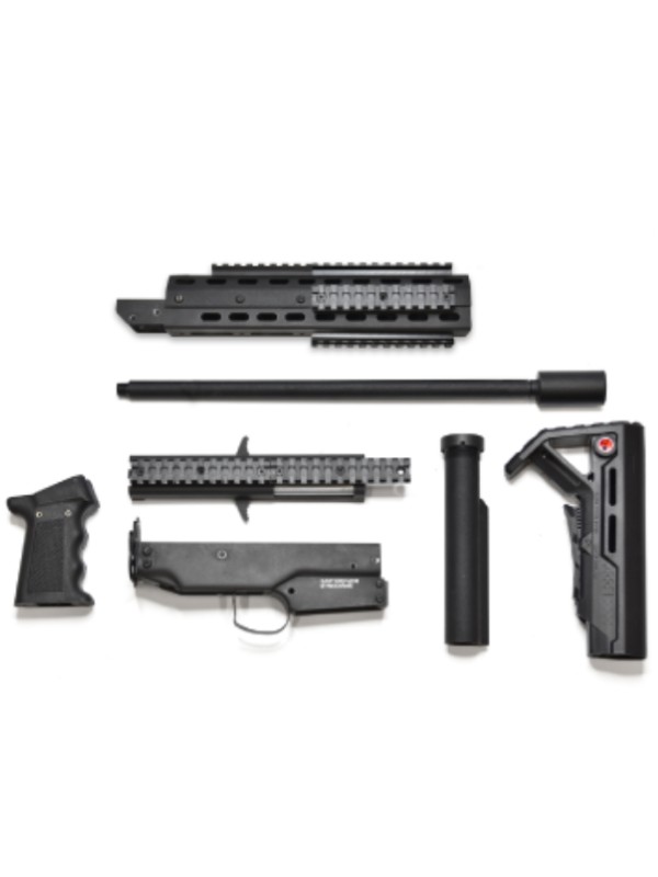 Комплектация (?): | боди-кит, телескопический приклад с трубой, пистолетная рукоять, хоп-ап, нозл, пластина мотора, предохранитель гирбокса, магазин, крепеж, упаковка |