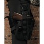 Универсальная набедренная кобура на платформе, изготовленная из кордуры. Платформа дополнительно оснащена одни гранатным подсумком и креплением для ножа. А на самой кобуре размещен дополнительный подсумок под пистолетный магазин.