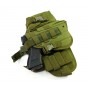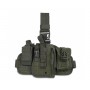 Универсальная набедренная кобура на платформе, изготовленная из кордуры. Платформа дополнительно оснащена одни гранатным подсумком и креплением для ножа. А на самой кобуре размещен дополнительный подсумок под пистолетный магазин.