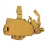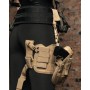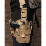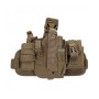 Универсальная набедренная кобура на платформе, изготовленная из кордуры. Платформа дополнительно оснащена одни гранатным подсумком и креплением для ножа. А на самой кобуре размещен дополнительный подсумок под пистолетный магазин.