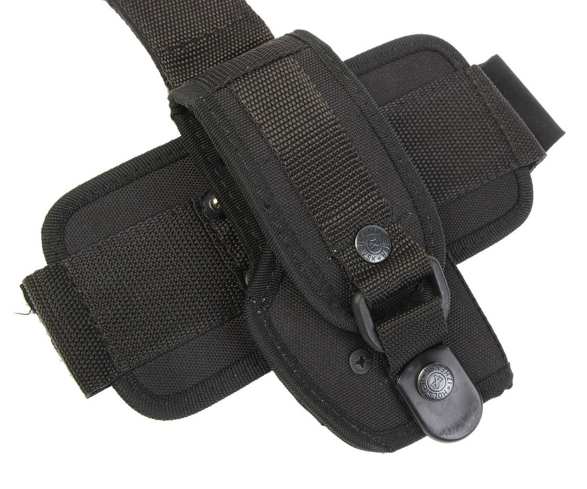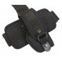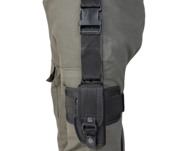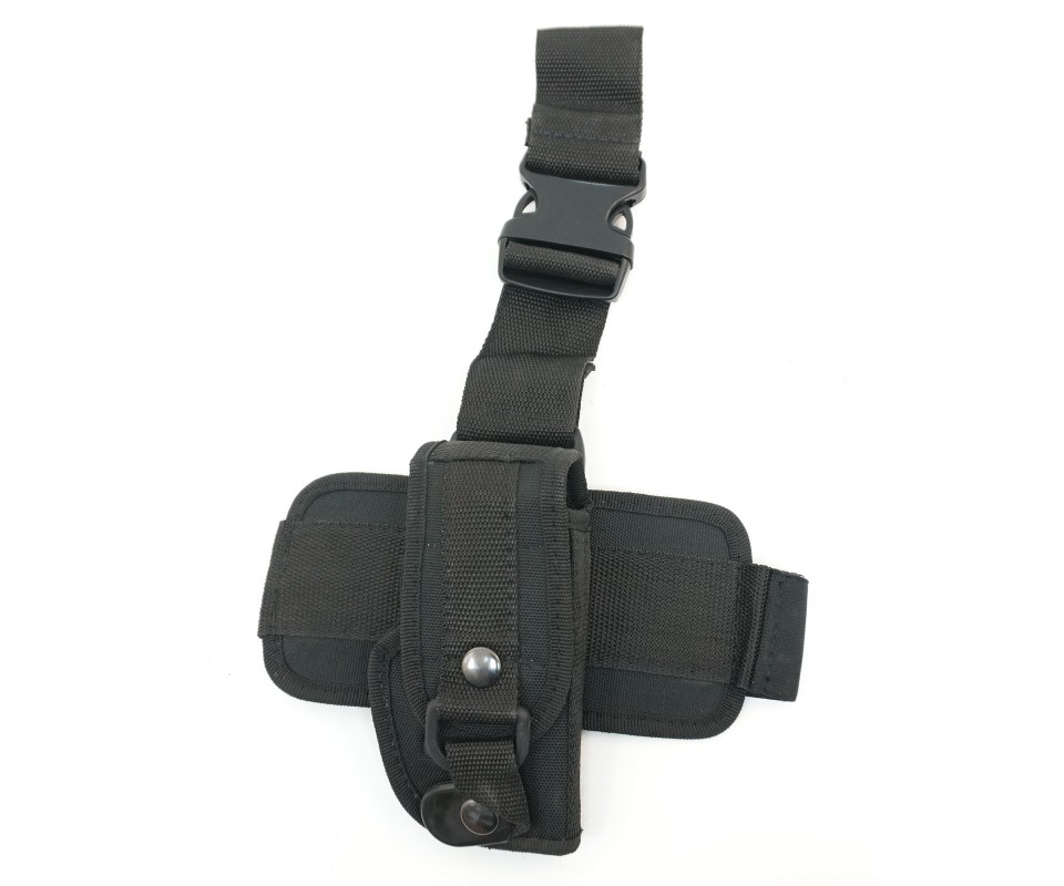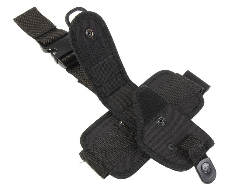 Эта модель предназначена для ношения пистолета на бедре. Удобное крепление, обхватывающее ногу, надежно фиксирует кобуру. Оружие кладется внутрь, принимая вертикальное положение. Открытая рукоятка поможет, при необходимости, быстро достать пистолет.