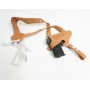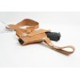 Оперативная кобура для ПМ из кожи юфть коричневого цвета. Крепление с одной стороны на резинке - это упрощает ежедневное использование кобуры. Возможно регулировать ремни и резинки по длине. Также, кобуру можно использовать как поясную, если отсоединить ремни. Возможна установка стальной скобы для скрытого ношения кобуры на поясе.