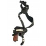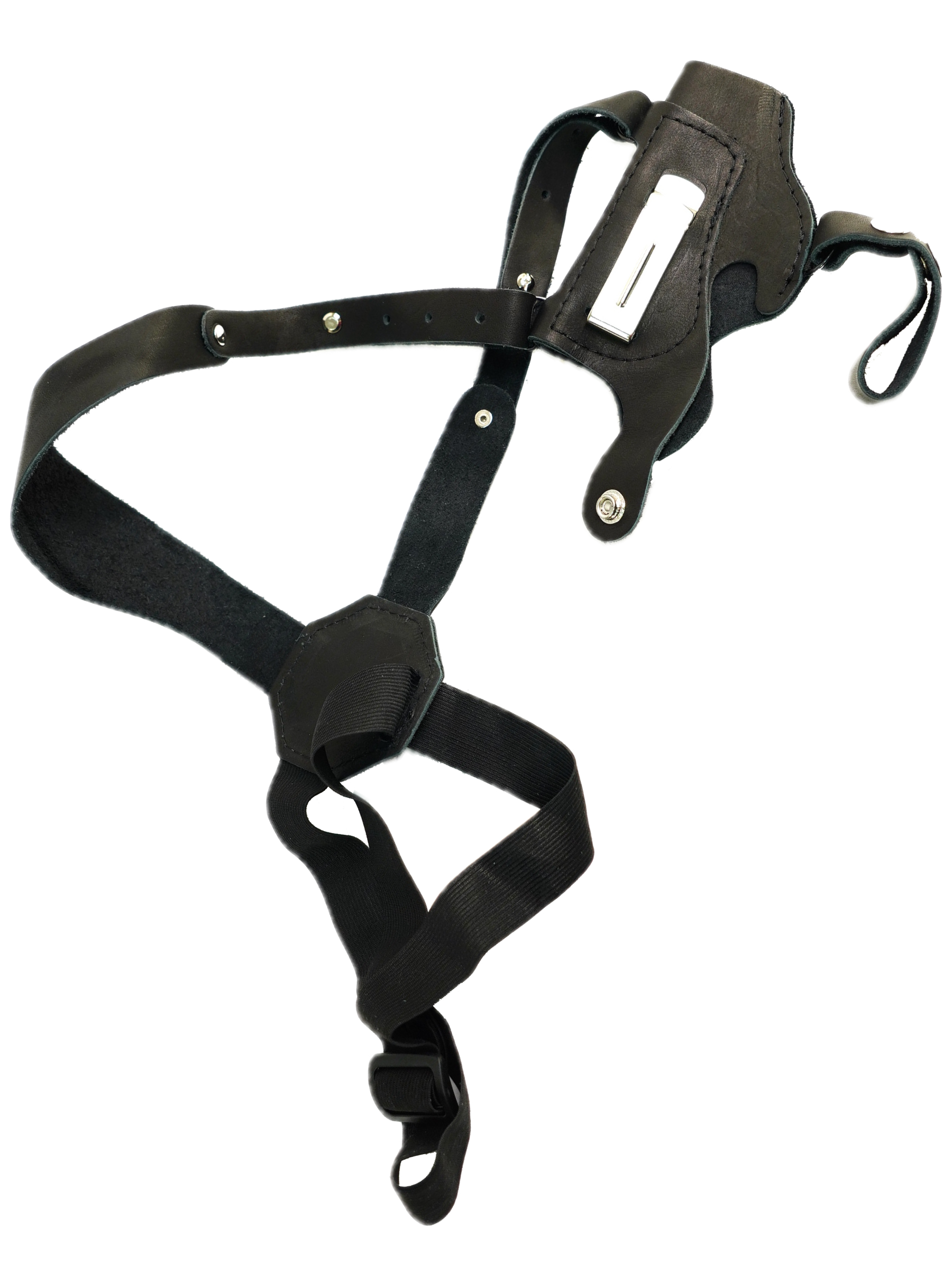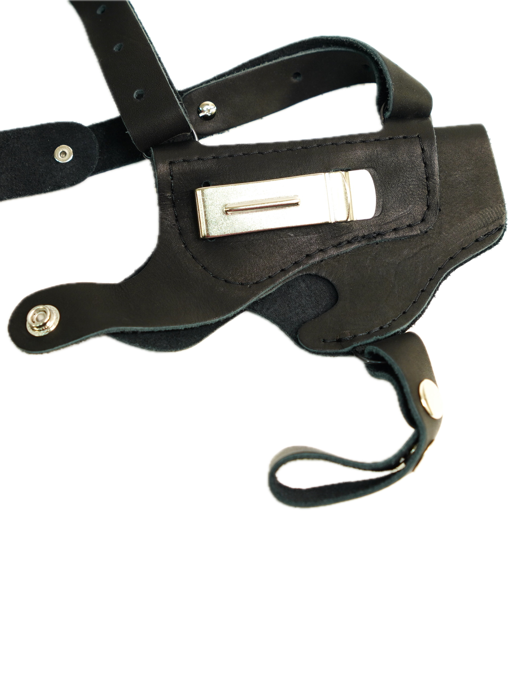 Оперативная кобура для ПМ из кожи краст черного цвета. Крепление с одной стороны на резинке - это упрощает ежедневное использование кобуры. Возможно регулировать ремни и резинки по длине. Также, кобуру можно использовать как поясную, если отсоединить ремни. Крепление на ремень с помощью скобы.
