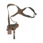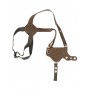 Оперативная кобура для ПМ из кожи краст коричневого цвета. Крепление с одной стороны на резинке - это упрощает ежедневное использование кобуры. Возможно регулировать ремни и резинки по длине. Также, кобуру можно использовать как поясную, если отсоединить ремни. Крепление на ремень с помощью скобы.