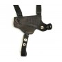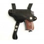 Кобура оперативная (скрытого ношения) для ПМ (пистолет Макарова) X-образная из натуральной кожи с карманом для второго запасного магазина. Имеет регулируемые ремни, пистолет и карман под обойму фиксируется застежкой-кнопкой. Крепление на ремень с помощью клипсы.