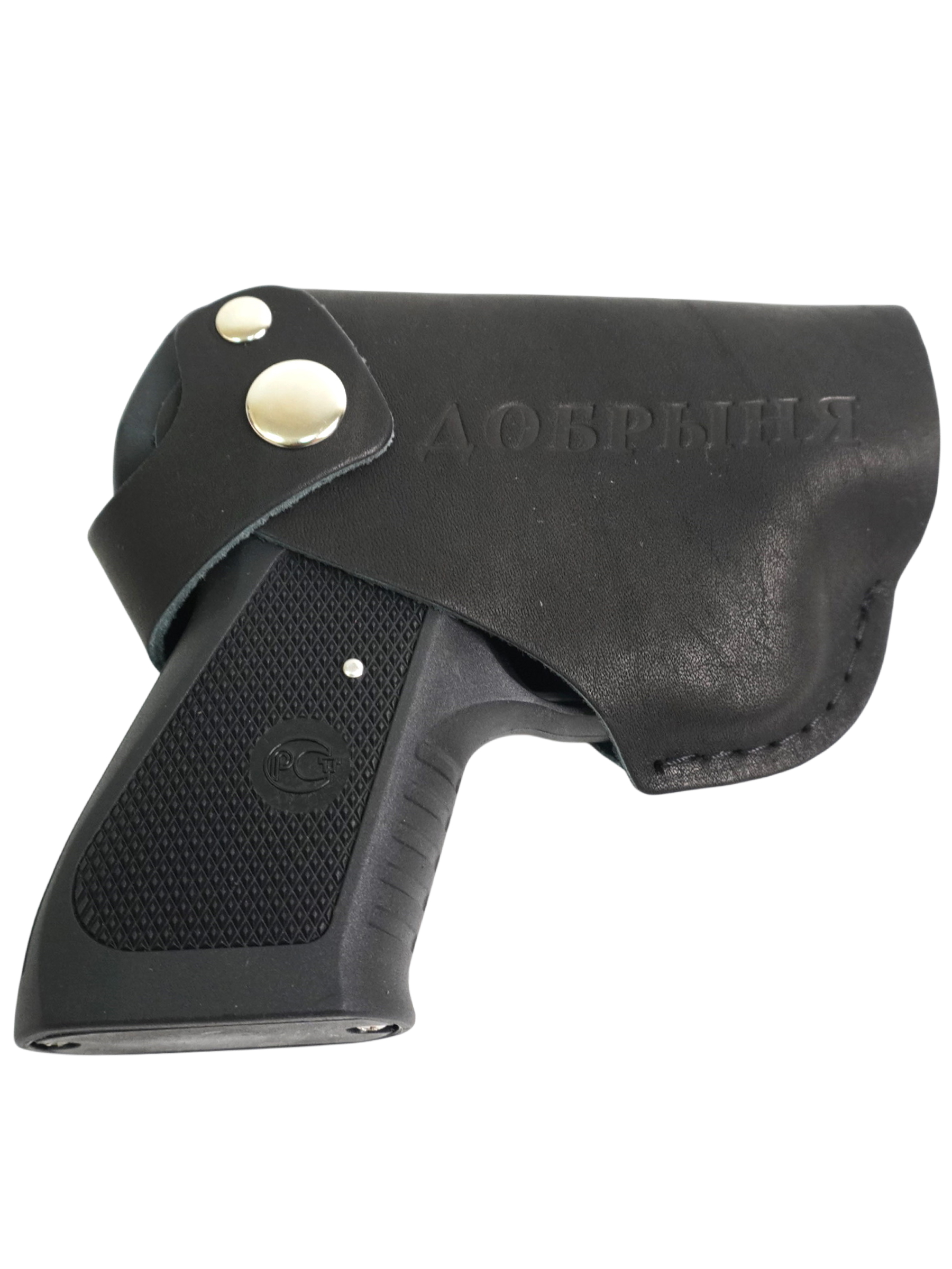 Данная поясная кобура предназначена для ношения аэрозольного устройства (пистолета) «Добрыня». Изготовлена из натуральной кожи краст.