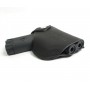 Для фиксации кобуры на ремне, на тыльной стороне кобуры имеются лямки, сквозь них можно продеть ремень от брюк.
