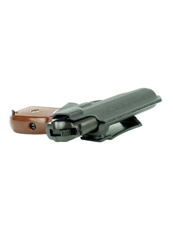 Классическое исполнение кобуры скрытого ношения. Клипса обеспечивает надежную фиксацию оружия на поясе. Может носиться "на час, три и пять часов". Крепление рассчитано на ремень шириной до 5 см.