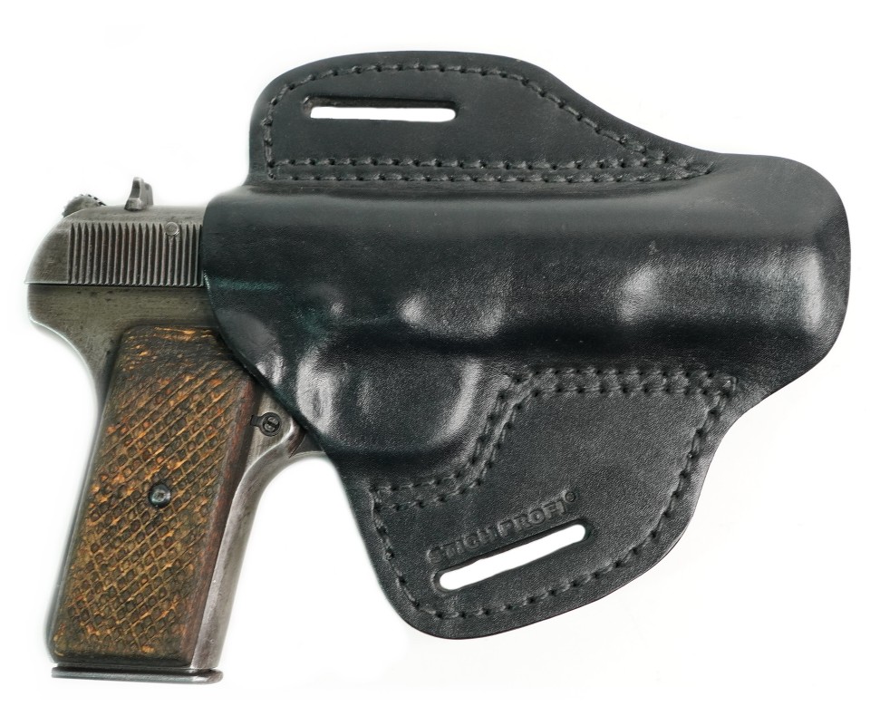 Кобура поясная ТТ "Люкс", модель № 1 (открытая с 2 ушами), производства предприятия Стич Профи г. Екатеринбург, предназначена для ношения и быстрого извлечения пистолета ТТ. Данная кобура изготавливается из натуральной кожи импортного производства и прошита высококачественными нитками со специальной пропиткой.