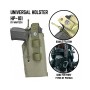 Универсальная кобура Wartech HP-101 подходит для большинства популярных моделей пистолетов, таких как Glock/CZ/SIG/Ярыгин и иных схожих по размерам моделей. MOLLE крепеж позволяет разместить кобуру на бронежилете, разгрузочном жилете или поясе, а так же на брючный или иной широкий пистолетный ремень.