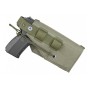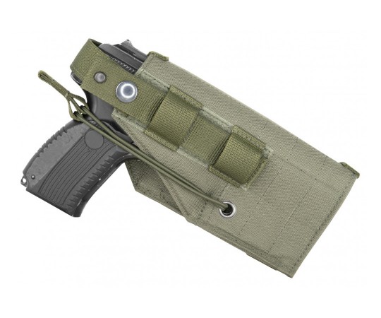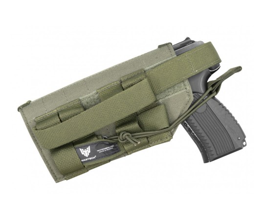 Универсальная кобура Wartech HP-101 подходит для большинства популярных моделей пистолетов, таких как Glock/CZ/SIG/Ярыгин и иных схожих по размерам моделей. MOLLE крепеж позволяет разместить кобуру на бронежилете, разгрузочном жилете или поясе, а так же на брючный или иной широкий пистолетный ремень.