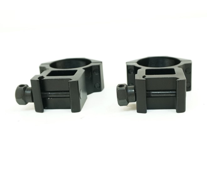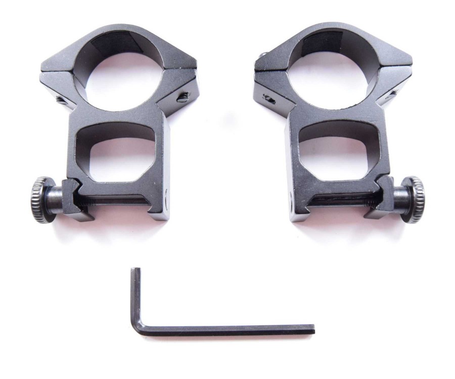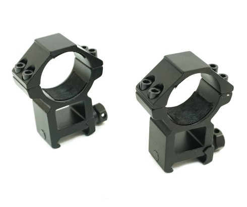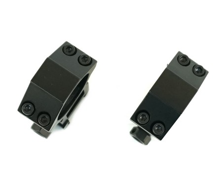 BH-RS33 – высокопрофильные кольца, с высотой посадки 22 мм, пригодятся для установки оптических и коллиматорных прицелов с размером трубки 30 мм и диаметром объектива до 74 мм, на планку Weaver. Корпус выполнен из алюминиевого сплава, поверхность анодирована, устойчива к коррозии. Каждое кольцо фиксируется на базе оружия стальным винтом с колесиком, который можно закрутить рукой.