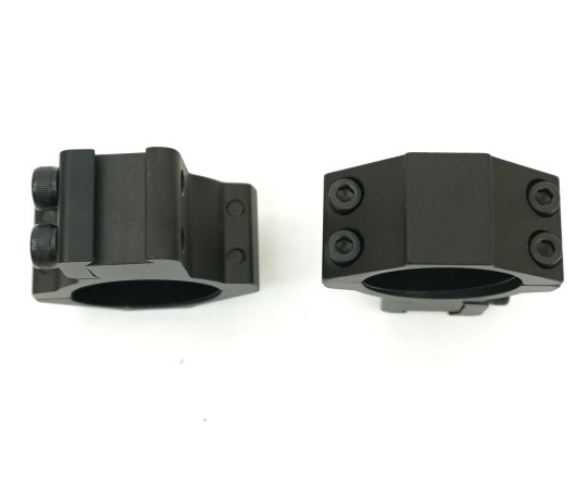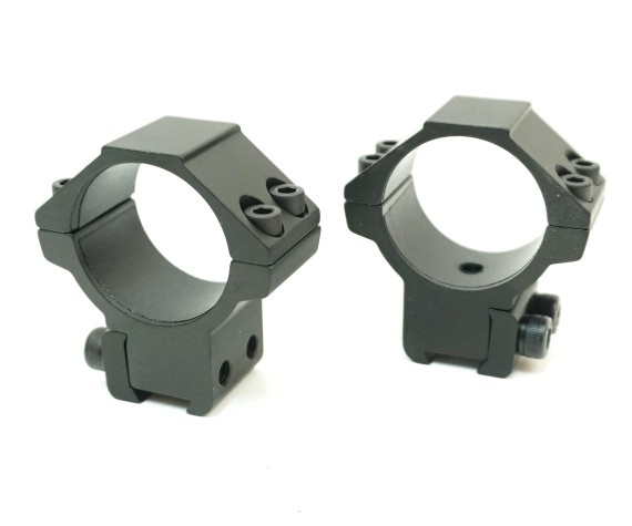 Кольца UTG Leapers RGPM-30M4 выточены из высокопрочного авиационного алюминия, анодированы. Используются для оптических прицелов с трубкой корпуса 30 мм, диаметром объектива до 58 мм. Крепление колец осуществляется на планку Ласточкин хвост, на прижимной планке два винта под ключ 4 мм. По внутренней поверхности проклеена защитная лента. Предусмотрен стопорный винт. Ширина 21 мм, высота посадки 14 мм. Упаковка – блистер.