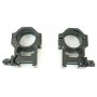 Посадочная высота 20 мм – кольца подойдут для установки оптики с объективом до 65 мм. Ширина колец составляет 25 мм, для фиксации верхних полуколец используются шесть стальных винтов. Кольца выдерживают отдачу без смещений благодаря специальному поперечному стопору. В комплекте запасной винт и шестигранный ключ 3 мм.