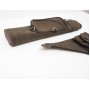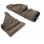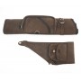 Колчан из натуральной замши для ношения на поясе. Подходит для ношения на ремне. Имеет три пластиковых тубуса для стрел. Есть два кармана для лучных аксессуаров. Отсек для стрел может отсоединяться от крепления к поясу.