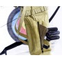 Большой заспинный колчан из плотной замши с двумя отделениями для стрел, карманом на молнии с тройной регулируемой лямкой.