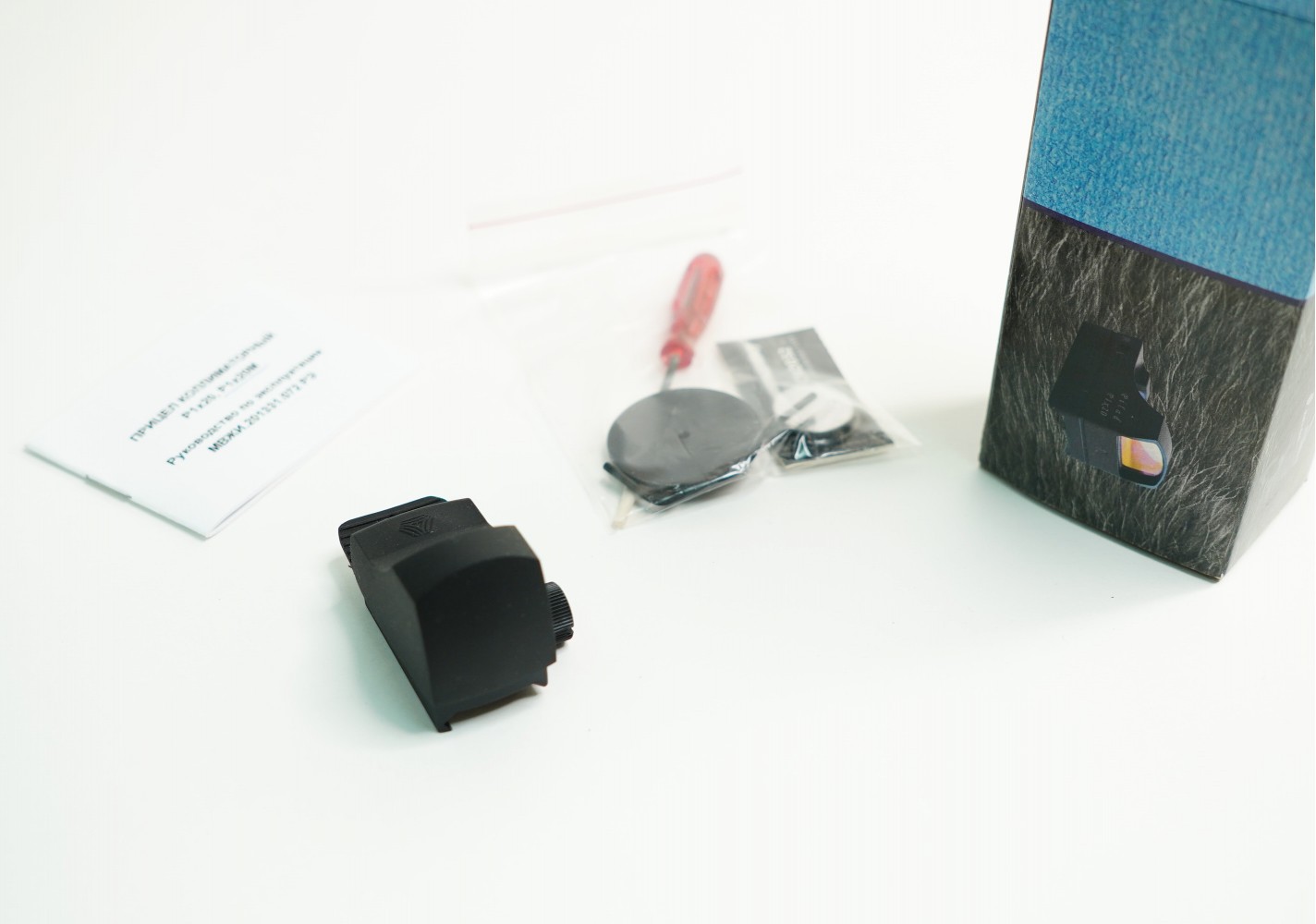 Комплектация (?): | прицел, батарейка CR2032, пристрелочный лимб, отвертка, инструкция, коробка |