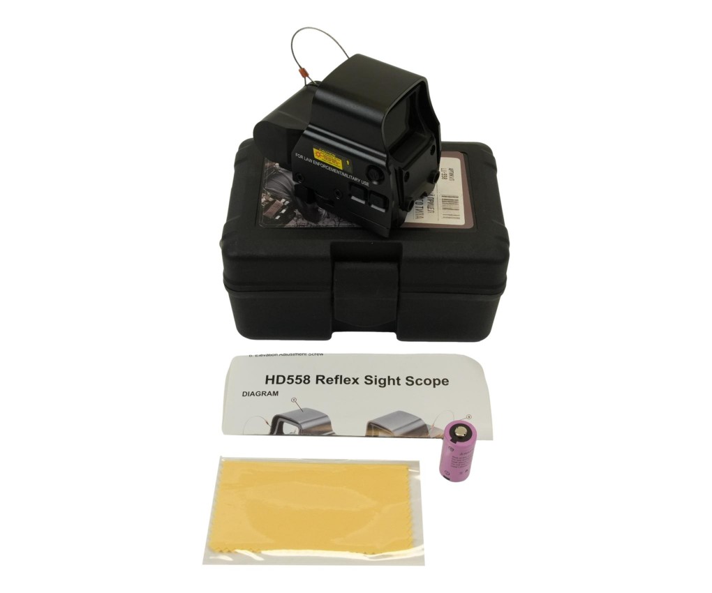 Комплектация (?): | прицел, батарейка, микрофибра для протирки линз, шестигранный ключ, инструкция, коробка |