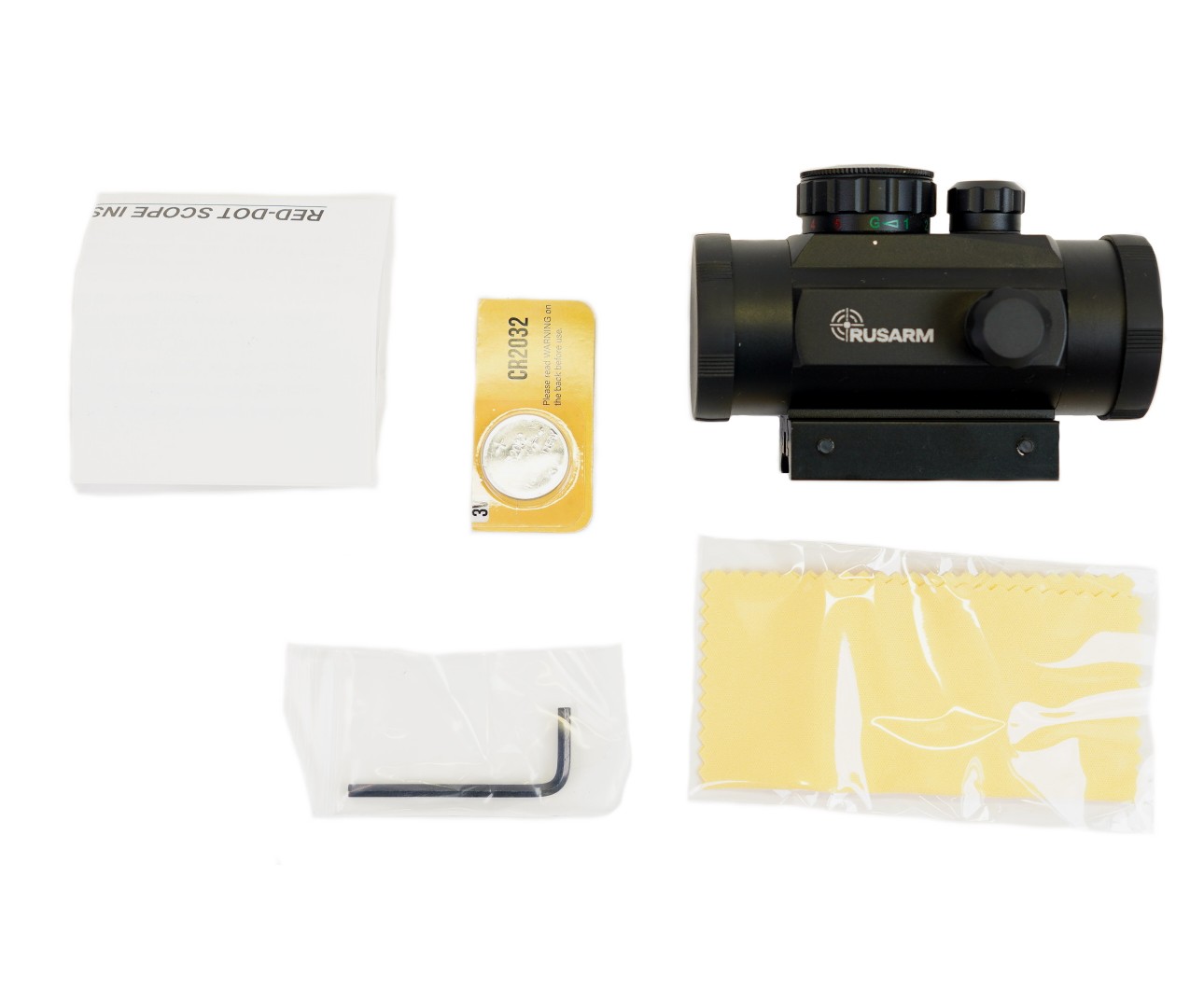 Комплектация (?): | коллиматор, кронштейн, защитные колпачки, шестигранник, салфетка для протирки оптики, батарейка CR2032 |