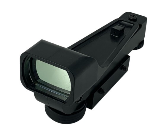 Для введения поправок установлены пара винтов, при настройке происходит перемещение именно прибора относительно основания, а не прицельной точки. Линза прибора размером 20х30 мм. Возможность увеличения отсутствует.