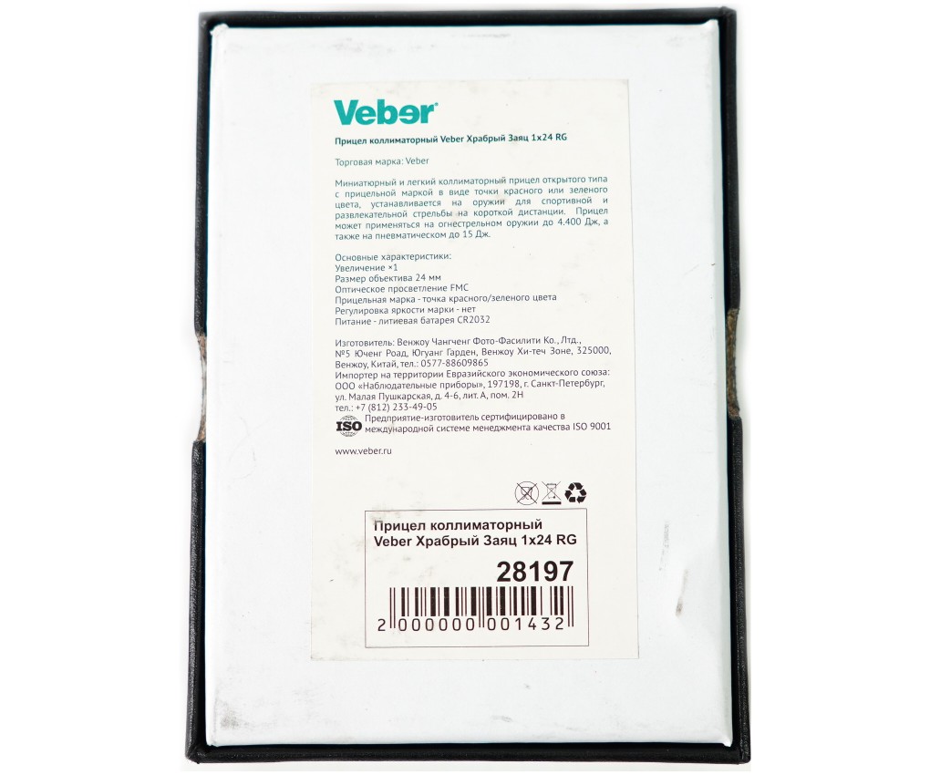 Описание коллиматорного прицела Veber Храбрый Заяц 1х24 RG: