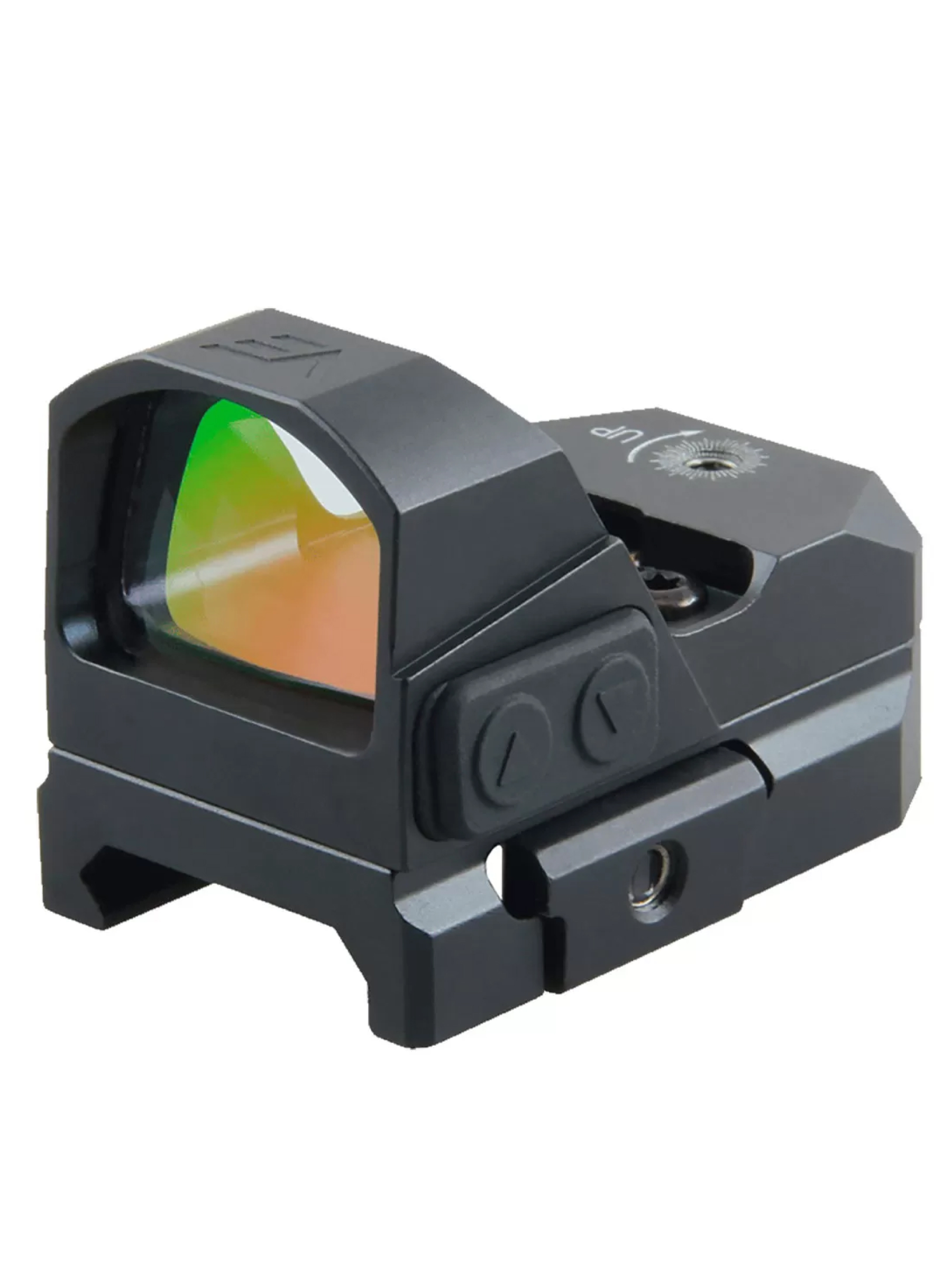 Открытый коллиматорный прицел Vector Optics Frenzy Pistol 1x17x24 — компактная универсальная модель с впечатляющим временем автономной работы до 50 000 часов (при самом низком уровне видимой подсветки), одной прицельной маркой. Устанавливается на планку Вивер/Пикатинни с помощью интегрированного небыстросъёмного кронштейна, может быть установлен на пистолеты, карабины, ружья, арбалеты и пневматическое оружие.
