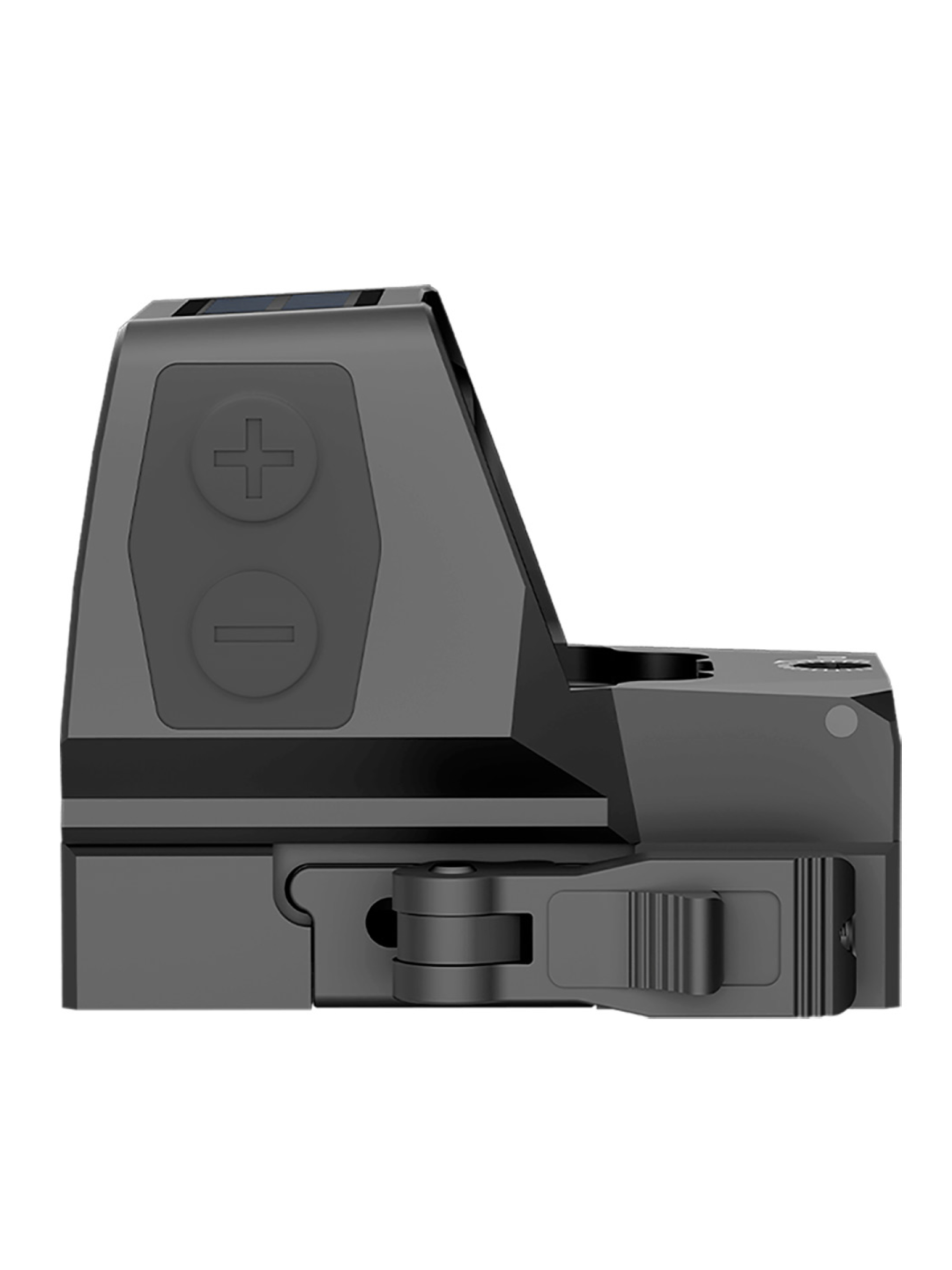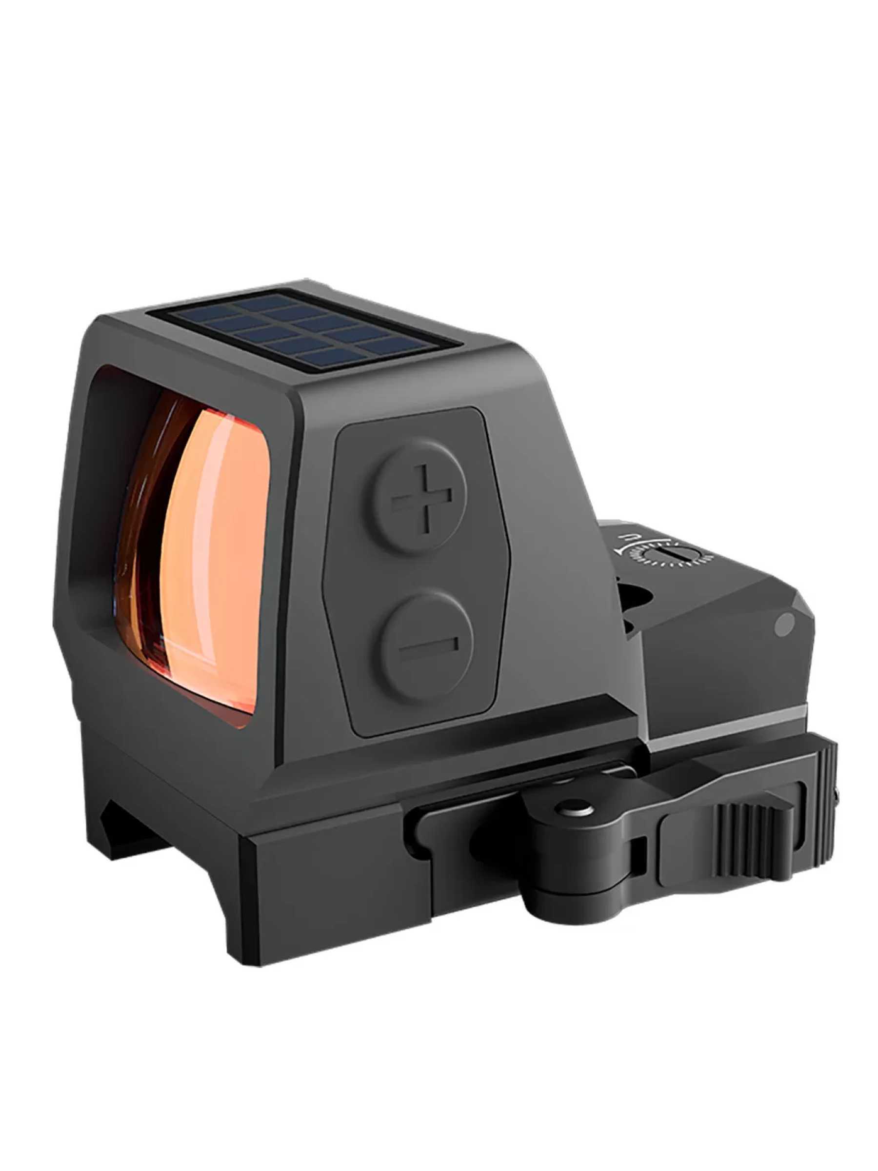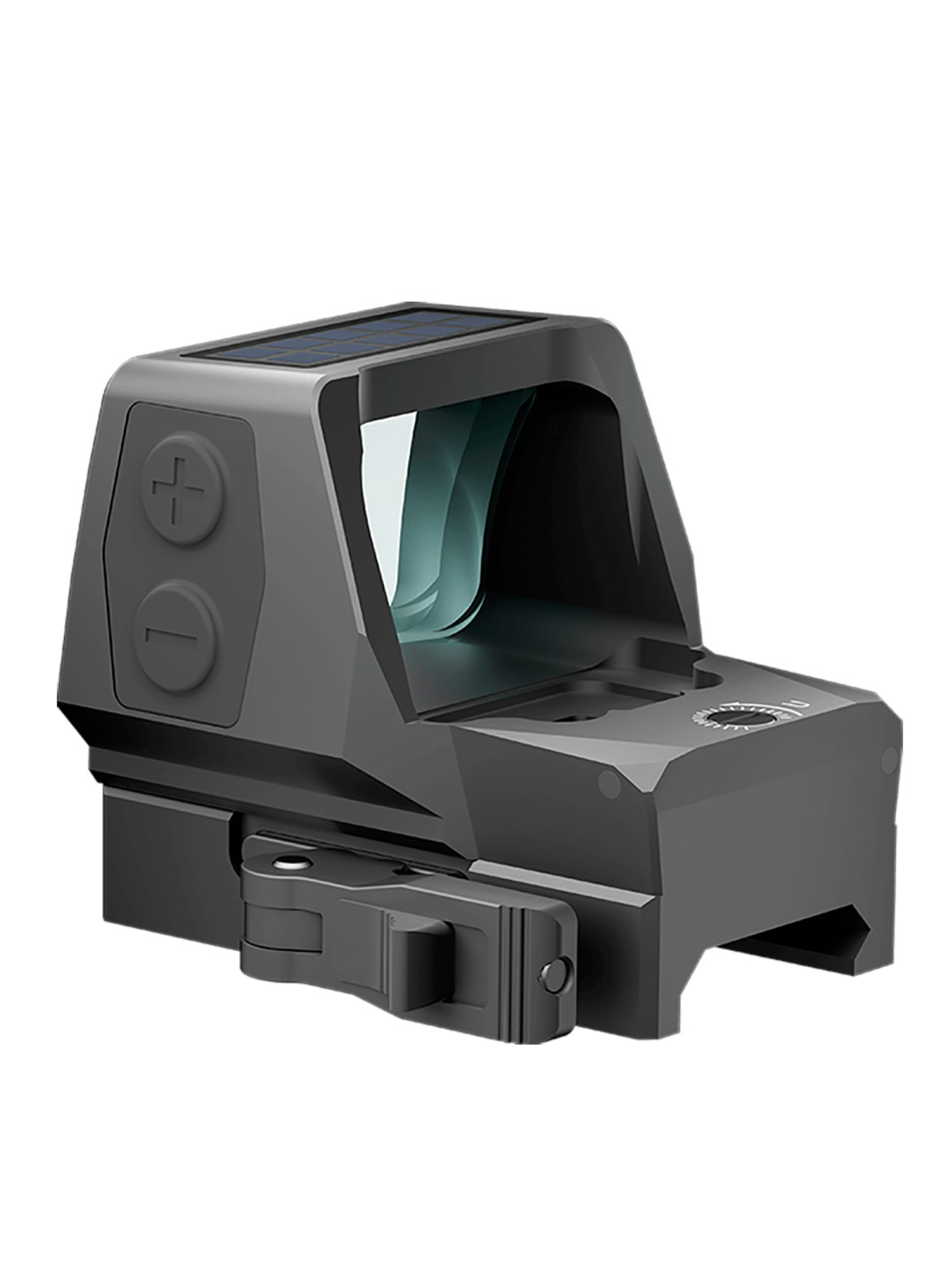 Открытый коллиматорный прицел Vector Optics Frenzy Plus 22x32 Solar — компактная модель с солнечной панелью, впечатляющим временем автономной работы до 80 000 часов, тремя сменными прицельными марками MRS. Устанавливается на планку Вивер/Пикатинни с помощью интегрированного быстросъёмного кронштейна, может быть установлен на карабины, ружья, арбалеты и пневматическое оружие. Прибор обладает простой, но проработанной оптической системой, исключающей возникновение визуальных искажений. Гарантируя простоту прицеливания, она позволяет поражать на коротких дистанциях даже движущиеся с большой скоростью цели.