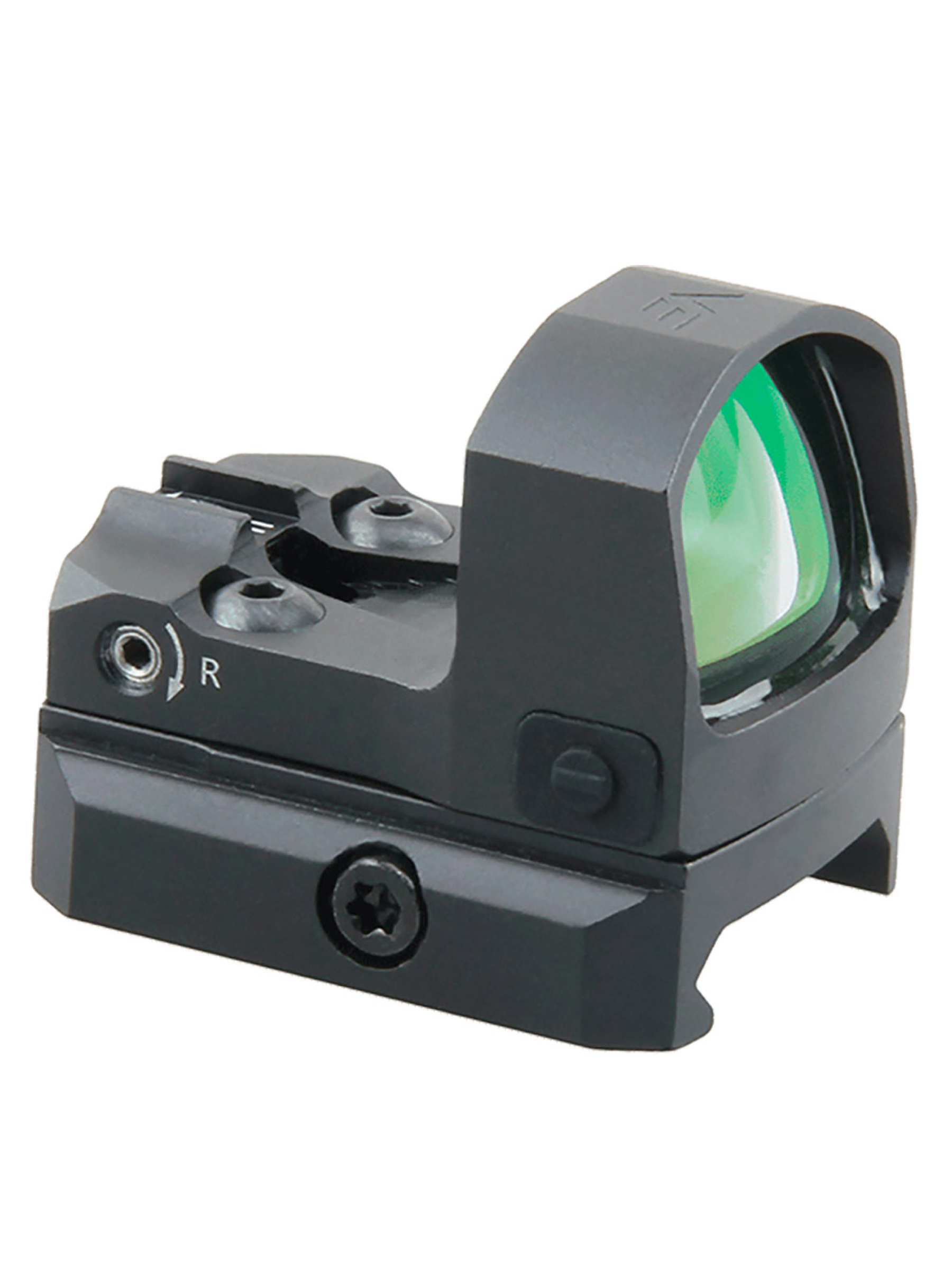 Открытый коллиматорный прицел Vector Optics Frenzy-S 17x24 MIC Pistol — компактная универсальная модель с впечатляющим временем автономной работы до 50 000 часов (при самом низком уровне видимой подсветки) и красной прицельной маркой типа точка размером 3 MOA. Устанавливается на планку Вивер/Пикатинни с помощью интегрированного небыстросъёмного кронштейна, может быть установлен на пистолеты, карабины, ружья, арбалеты и пневматическое оружие.