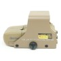 Данный прицел отличается высокой степенью сходства с оригинальным изделием, за исключением отсутствия логотипа бренда. Для активации прицельной марки и изменения степени ее яркости используется кнопка, расположенная на корпусе справа. После нажатия кнопки на проекционном стекле появляется зеленая или красная марка в виде точки или круга. Изменение цвета марки осуществляется специальной кнопкой. Доступны 20 уровней регулировки яркости, что обеспечивает возможность решить все проблемы с качеством видимости.