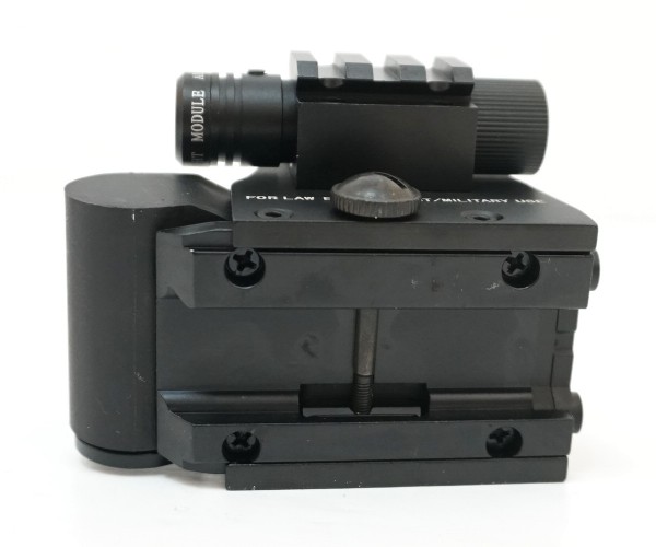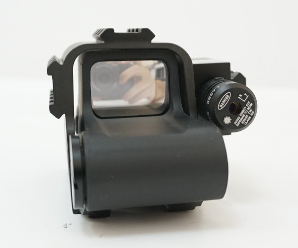 Материал изготовления прицела – алюминиевый сплав, обладающий необходимой прочностью и жесткостью. Конструкция прибора надежная, без люфтов. Возможна регулировка яркости прицельной сетки с помощью прорезиненных кнопок на тыльной стороне прибора. Эти же кнопки используются для выключения и включения коллиматора. Наличие встроенного ЛЦУ позволит стрелку вести прицельный огонь от бедра.