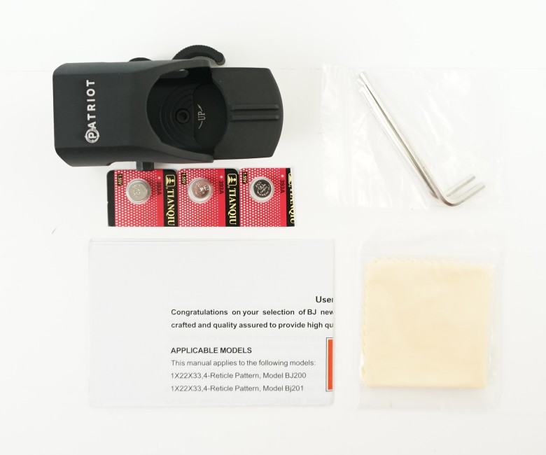 Комплектация (?): | прицел, батарейка - 3 шт., микрофибра для протирки линз, шестигранный ключ, инструкция, коробка |