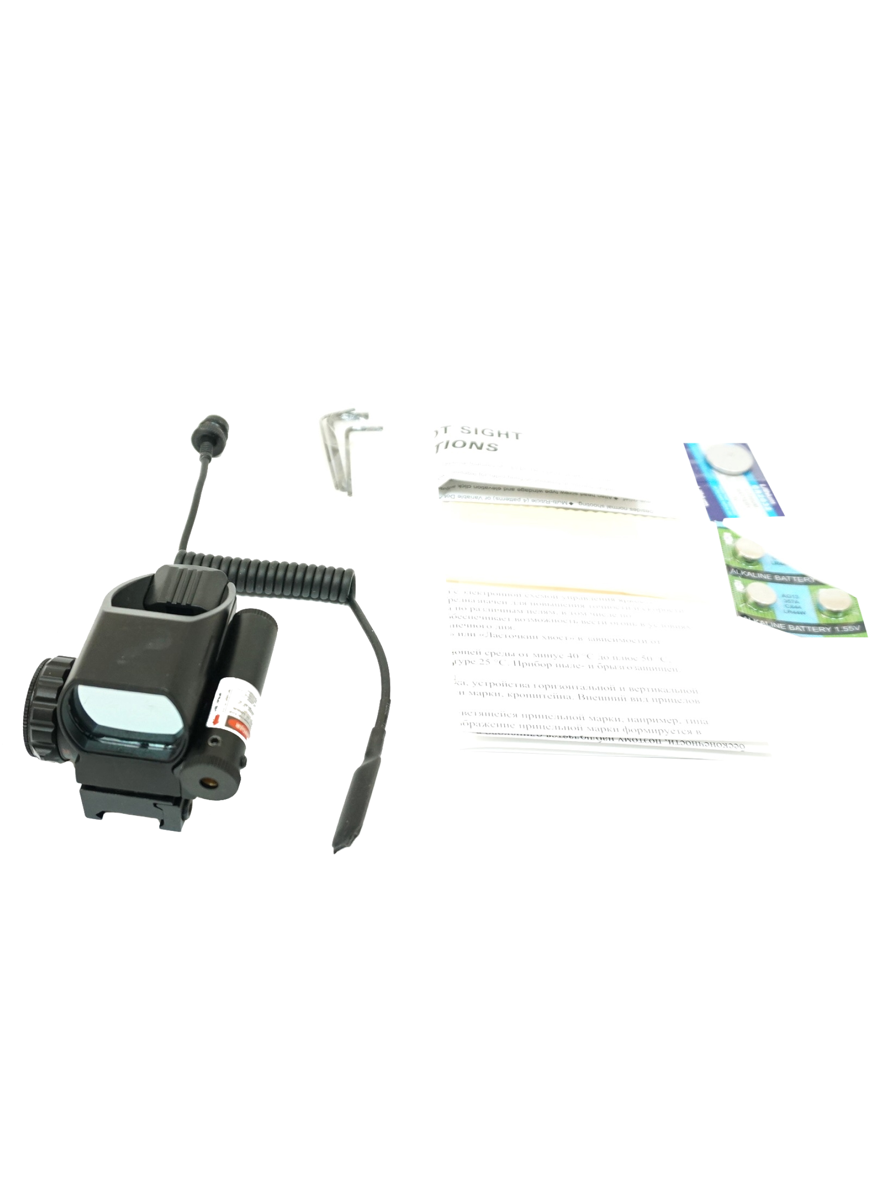 Для регулирования устройства в горизонтальной или вертикальной плоскости необходим шестигранник, включенный в комплектацию устройства. Кроме того, прицел комплектуется элементами питания, проводом для удаленного включения ЛЦУ, собственно ЛЦУ, а также специальной салфеткой для ухода за оптикой. Материал изготовления устройства – легкий алюминиевый сплав. Весит прицел всего 0,18 кг, длина его – 8,5 см.