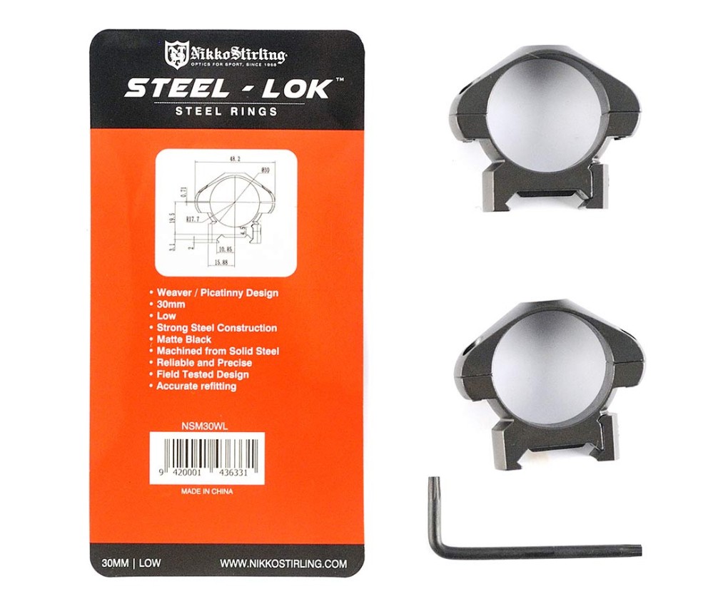 Кольца 30 мм Nikko Stirling Diamond, на Weaver – низкопрофильные кольца, с высотой посадки 4,5 мм, пригодятся для установки оптических и коллиматорных прицелов с размером трубки 30 мм на планку Weaver. Корпус выполнен из стали, поверхность анодирована, устойчива к коррозии. Каждое кольцо фиксируется на базе оружия одним стальным винтом, который можно закрутить рукой.