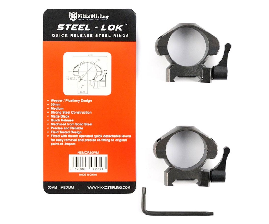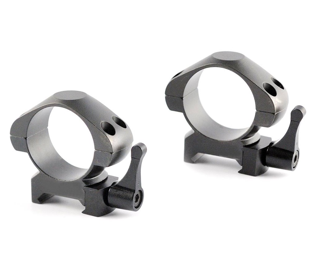 Кольца 30 мм Nikko Stirling Diamond QR, быстросъемные на Weaver – среднепрофильные кольца, с высотой посадки 6,7 мм, пригодятся для установки оптических и коллиматорных прицелов с размером трубки 30 мм на планку Weaver. Корпус выполнен из стали, поверхность анодирована, устойчива к коррозии. Каждое кольцо фиксируется на базе оружия одним стальным винтом, который можно закрутить рукой.