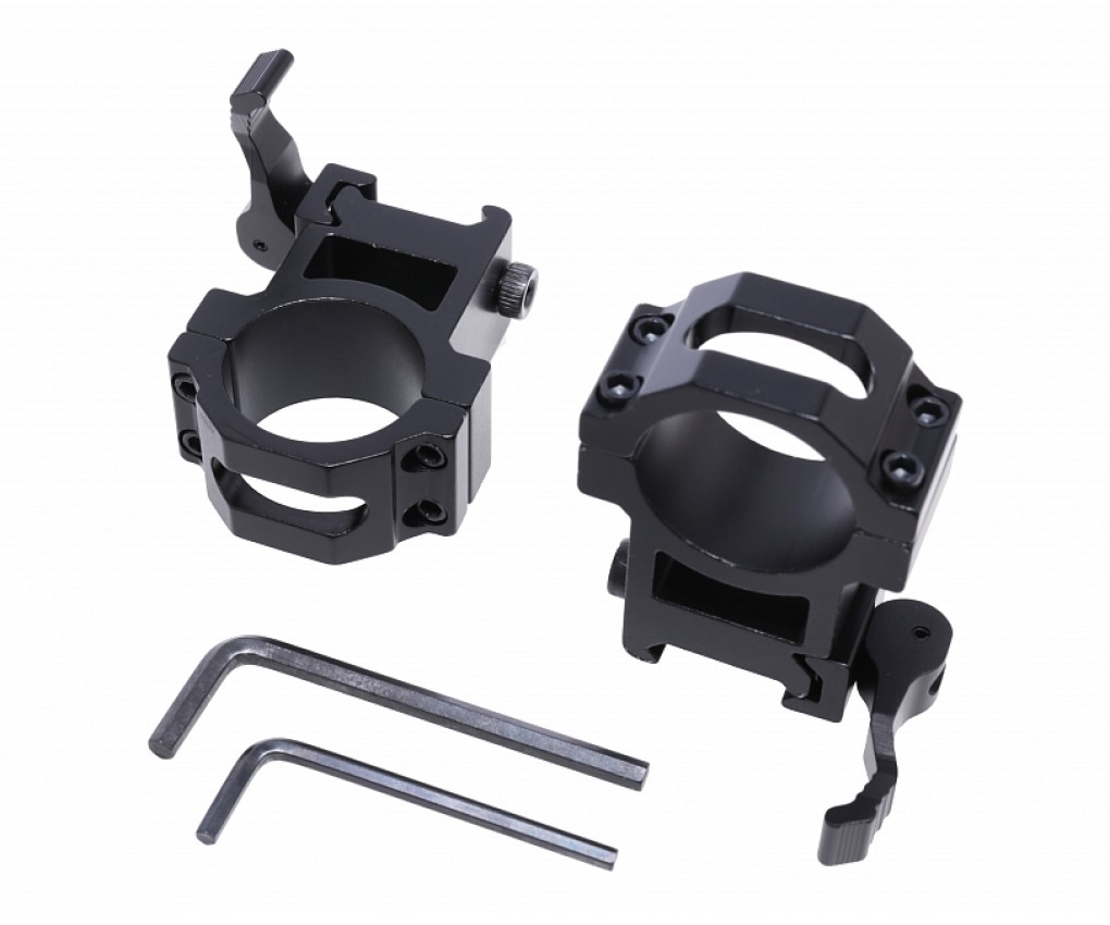 Оружейные крепления - это инструмент, предназначенный для размещения дополнительных устройств, которые требуются в применении как для охотничьего, так и спортивного оружия. Для корректного пользования снаряжения нужно подобрать правильное сочетание, которое обеспечит точность стрельбы и надежность установки. Одним из самых популярных способов крепежа остаются кольца. Они надёжны и просты в эксплуатации. В свою очередь они подразделяются по высоте, виду запирания, форме, материалу изготовления и даже составу. Но определяющим фактором при выборе колец будет первая позиция из списка, а остальное подбирается владельцем исходя из личных предпочтений и собственного комфорта. Основным критерием отбора является высота, которая подразделяется в соответствии с величиной объектива. Низкие подойдут под размеры от 25 мм до 32 мм, средние – до 46 мм, а высокие для прицельного приспособления до 52 мм. При большем диаметре используются сверхвысокие модели.