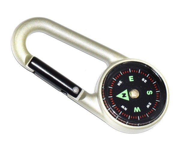 Небольшой компас-карабин, который пригодится в любом походе. Благодаря своей конструкции, модель очень проста в транспортировке, так как может быть закреплена где угодно. Материал изготовления корпуса компаса - прочный металлический сплав.