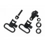 Комплект антабок быстросьемных Uncle Mike`s QD115 SG-2 для помповых ружей и полуавтоматов, 15612. В комплекте две антабки, шуруп длиной 19 мм (3/4") со штырем, поворотная втулка со штырем для установки на крышку подствольного магазина, гайка, две шайбы и пластиковая прокладка.