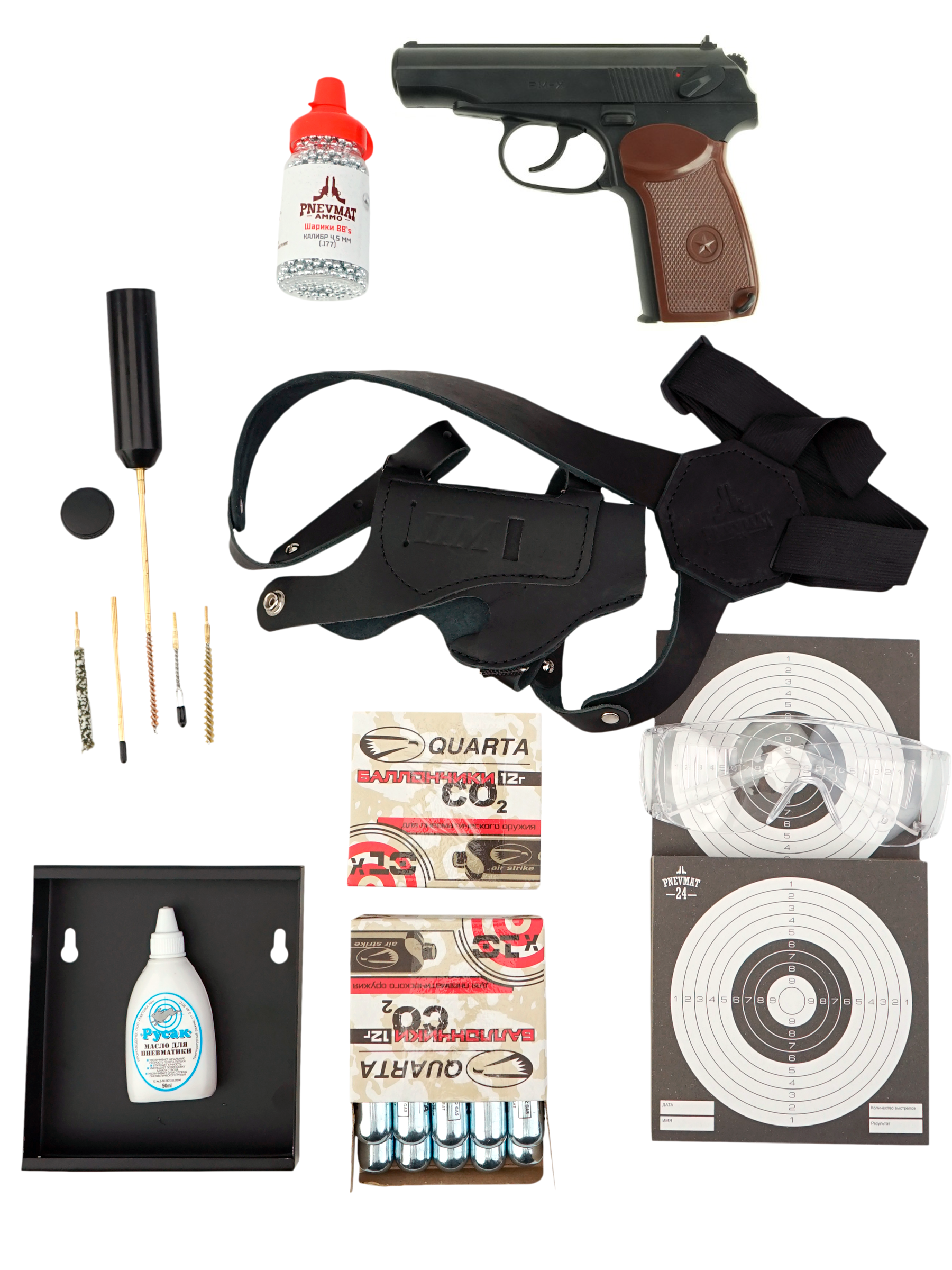 Описание пневматического пистолета Borner PM-X (комплект):