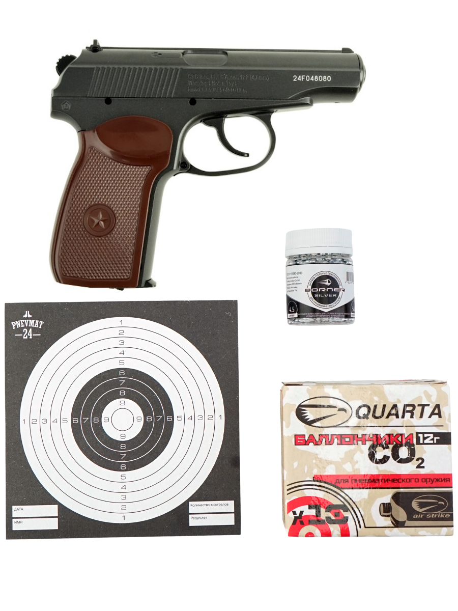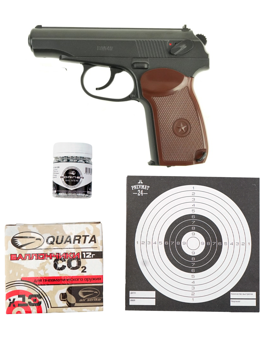 Пневматика Borner ПМ - копия всемирно известного пистолета «Макарова», сконструированного в 1949 г. Боевой аналог был на вооружении милицейских и армейских подразделений Советского Союза. Выполненная на русском инструкция облегчает эксплуатацию и знакомство с оружием. Металлический корпус и накладки из пластика на рукоятке придают оружию Borner ПМ49 стильный внешний вид. Корпус пистолета - цельный литой, позволяет взводить спусковой курок при неподвижности рамы.