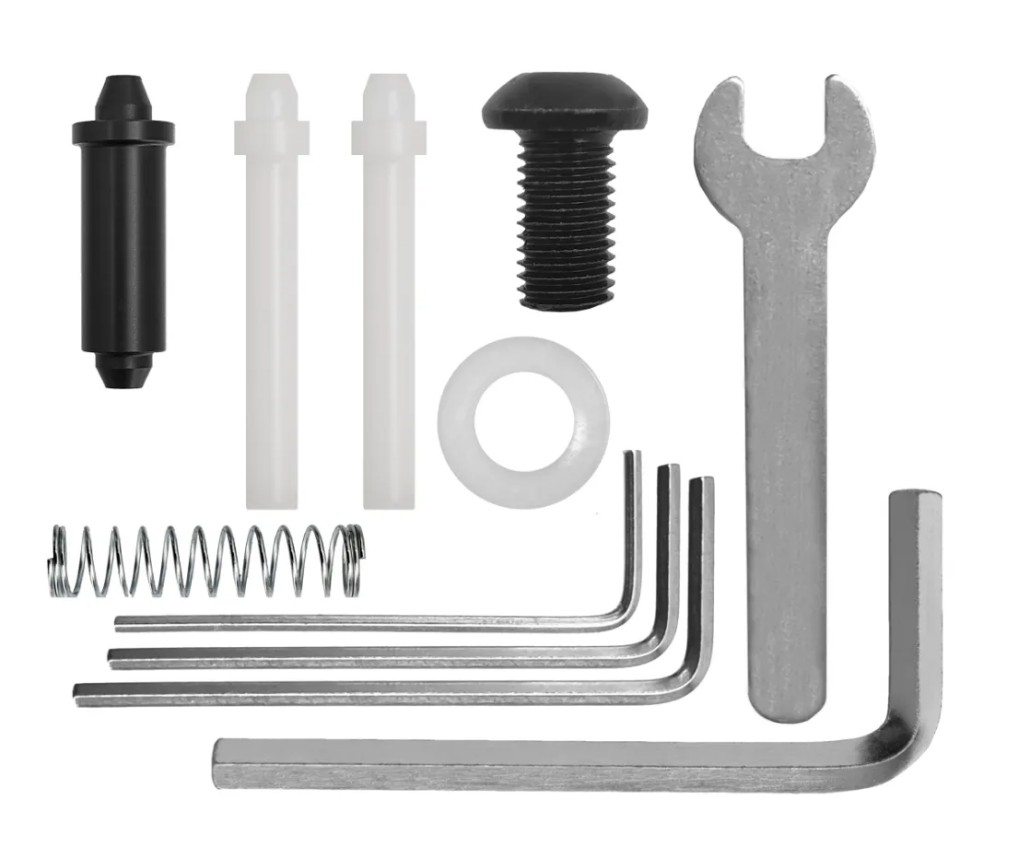 Комплектация (?): | плунжер, полочка, шестигранники для установки и регулировки плунжера с полочкой (4 шт). Диаметры: 1/16; 5/64; 3/32 и 3/16 дюйма., ключ гаечный для разбора плунжера, пластиковая кнопка и одна запасная (всего - 2шт.), запасная пружина, запасной стоппор, болт крепления полочки 5/16 дюйма |