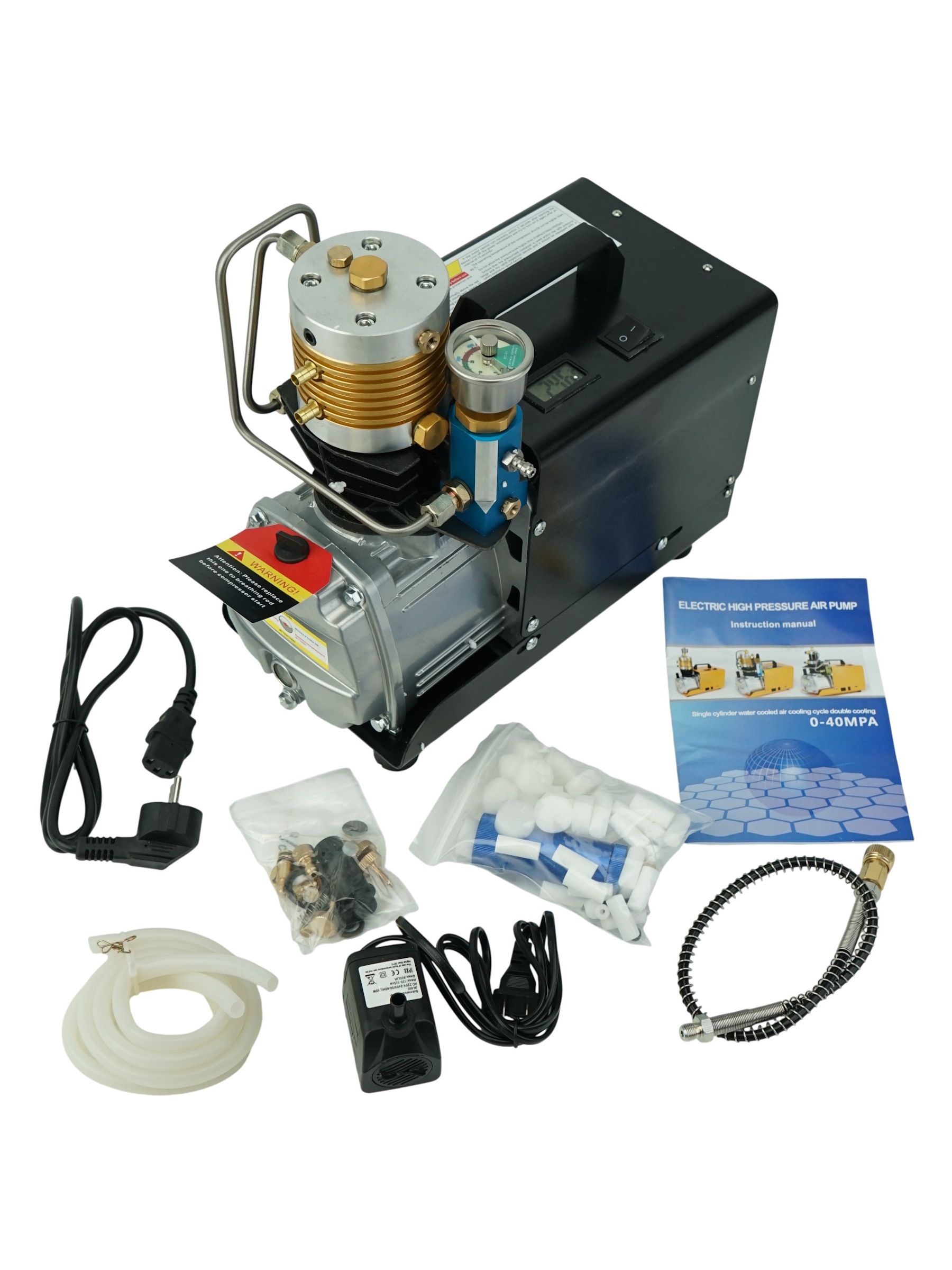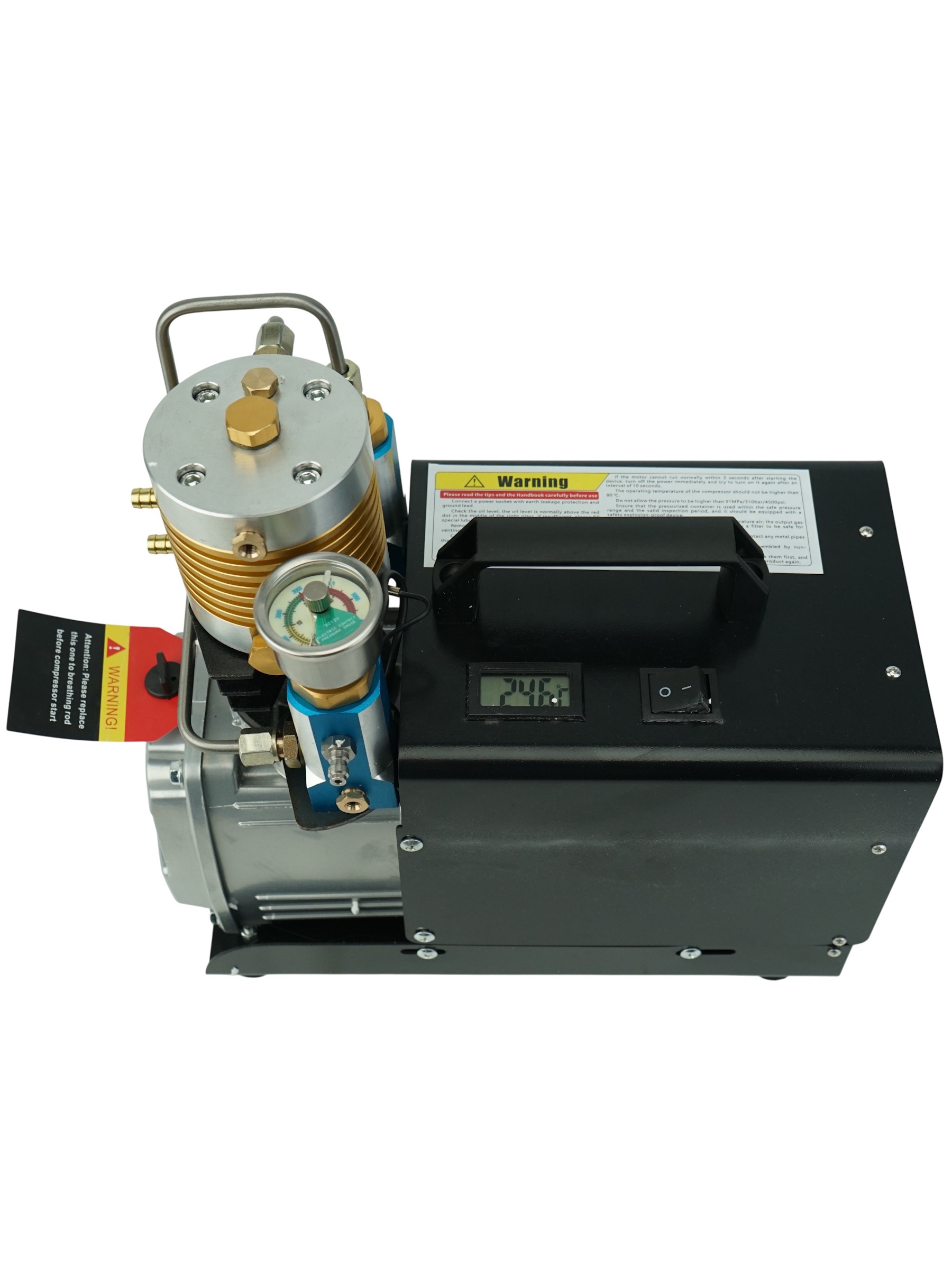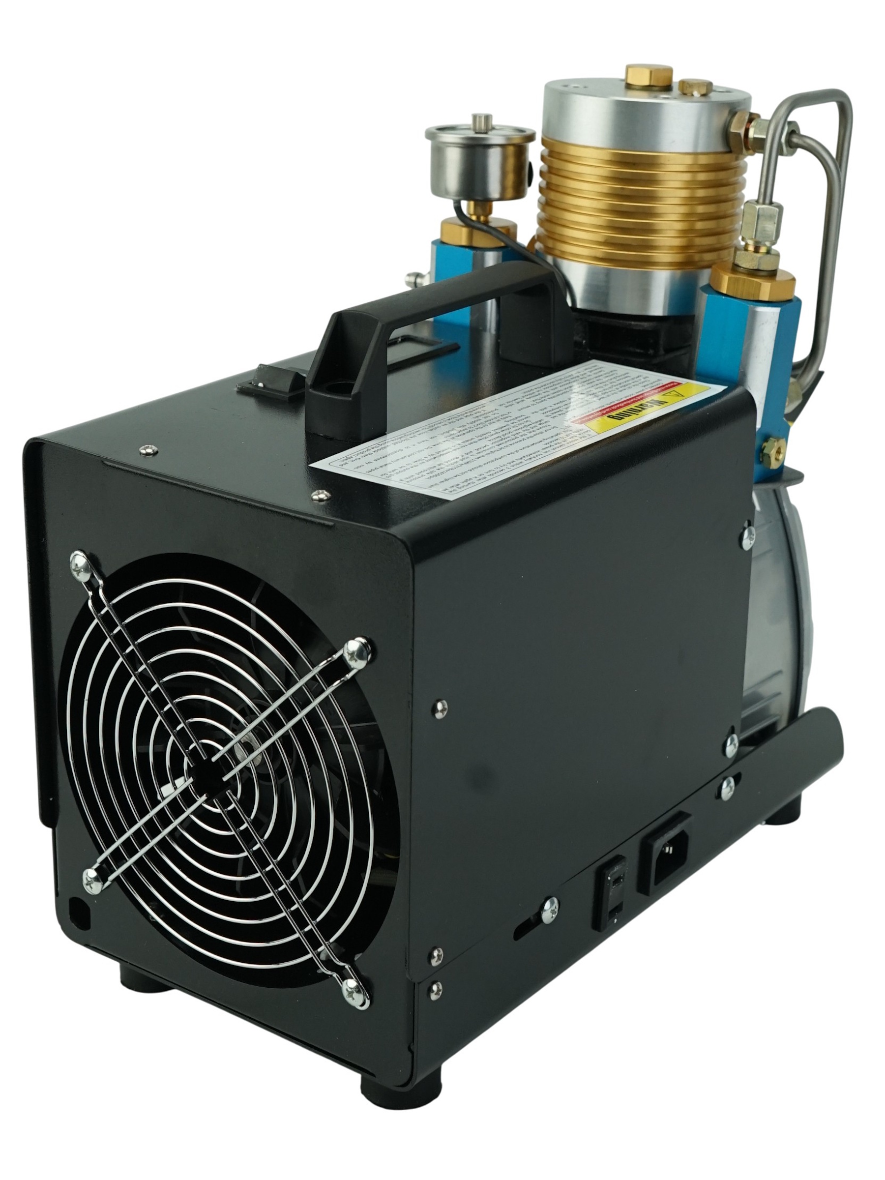 Компрессор ВД 220В 1.8 кВт (модель 010). С жидкостным охлаждением цилиндра ВД нового образца, с дополнительными боковыми сепараторами, с автоматическим отключением при заданном давлении, с предохранительной разрывной мембраной ВД.
