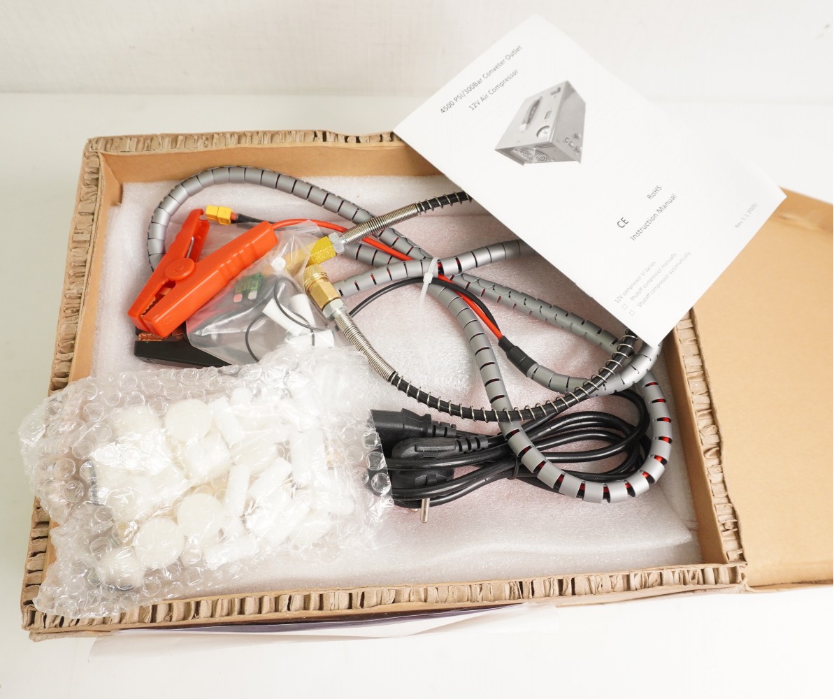 Комплектация (?): | компрессор, заправочная станция, осушитель, сорбенты, ЗИП, трансформаторный блок на 220 В, комплект подключения к клеммам аккумулятора, инструкция |