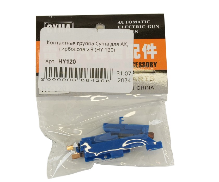 HY118 - контактная группа для оснащения гирбоксов 3-й версии от фирмы Cyma, Китай. Изготовлен из пластика, который устойчив к высоким температурам. Высокую проводимость обеспечивают контакты из меди.