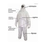 Размеры рассчитаны специально для холодной поры года, чтобы костюм можно было легко надеть поверх теплой одежды и отрегулировать. Набор состоит из штанов и куртки, покрой последней – анорак, предусмотрены рукавицы и капюшон.