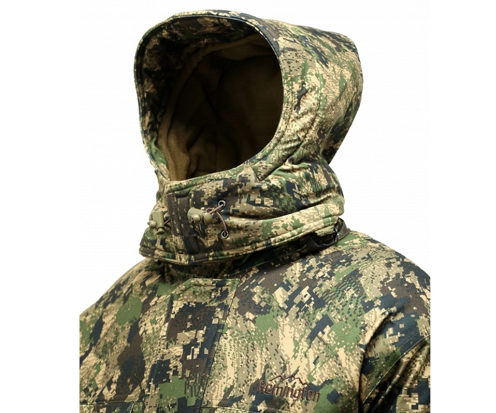 Костюм зимний Remington Pro Hunting Club Green Forest изготовлен из бесшумной мембраны Climatic Pro с показателями паропроницаемость 12 000 г/м²/24 ч, водонепроницамость 10 000 мм. Благодаря современному утеплителю Pro Heat изделие можно использовать при температуре до -35 градусов. Внешний слой ткани выполнен из мягкого, ворсистого полиэстера, обеспечивающий практически полную бесшумность при движении. Внутри костюма есть дополнительный утепляющий слой из флисовой ткани.