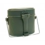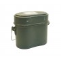 Верхняя крышка, может использоваться как ковш или сковорода. Пригоден для приготовления пищи на открытом огне. Может быть использован, как индивидуальный котелок, или чайник на несколько человек (3-4). Компактен, не занимает много места, лёгок. Внутри можно хранить продукты, прочий полезный скарб. Практичная и недорогая вещь, поможет выжить в условиях леса, природы, реки.