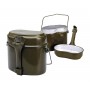 Материал изготовления армейского котелка – алюминий. Котелок плотно запирается, а его крышка может использоваться, как сковородка для разогрева второго блюда.