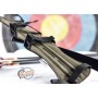 Крага из натуральной кожи с ребрами жесткости. Защищает предплечье и локоть. Для ношения при стрельбе из блочных луков. Крепится на карабинах.