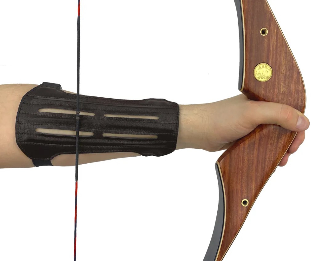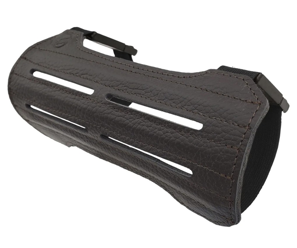 Крага надевается на внутреннюю часть предплечья для защиты руки и элементов одежды от контакта с тетивой. Разработана для профессиональной охоты с луком, но также подходит для практической, традиционной и спортивной стрельбы.